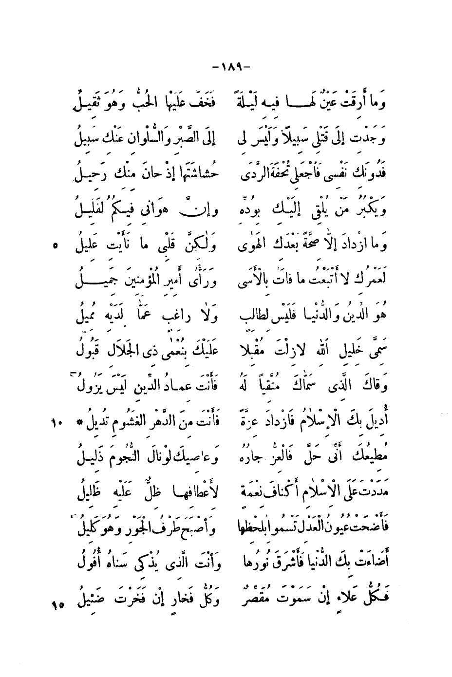فَأَضْحَتْ عُيُونُ الْعَدْلِ تَسْمُوا بِلحْظِهاوأَصْبَحَ طَرْفُ الْجَوْرِ وَهُوَ كَلِيلُ