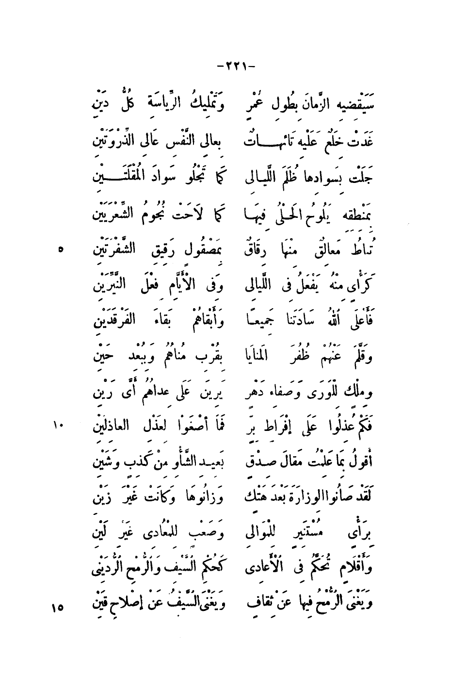 سَيَقْضِيهِ الزَّمانَ بِطُولِ عُمْرٍ ... وَتَمْلِيكُ الرِّياسَةِ كُلُّ دَيْنِ