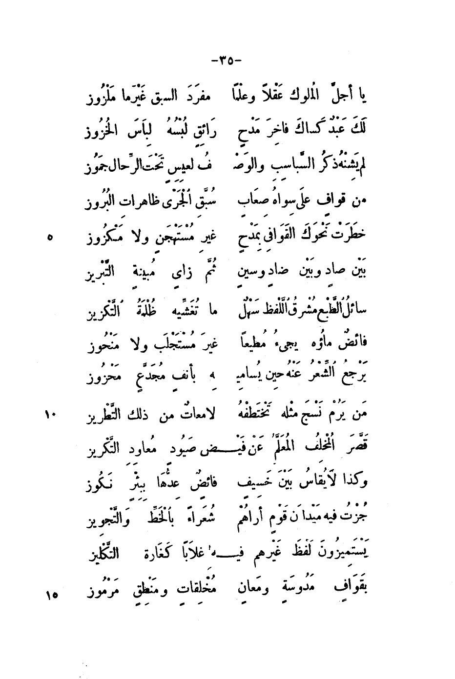 يا أَجلَّ المُلوك عَقْلاً وعلْماً ... مفَرَدَ السبق غَيْرَما مَلْزُوز