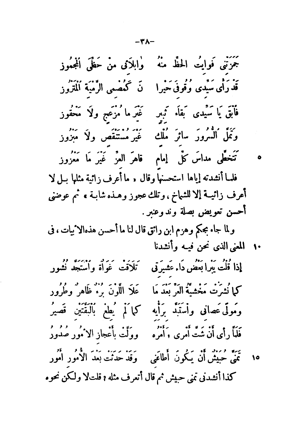 كذا أنشدني تمنى حبيش ثم قال أتعرف مثله؟ قلت لا ولكن نحوه