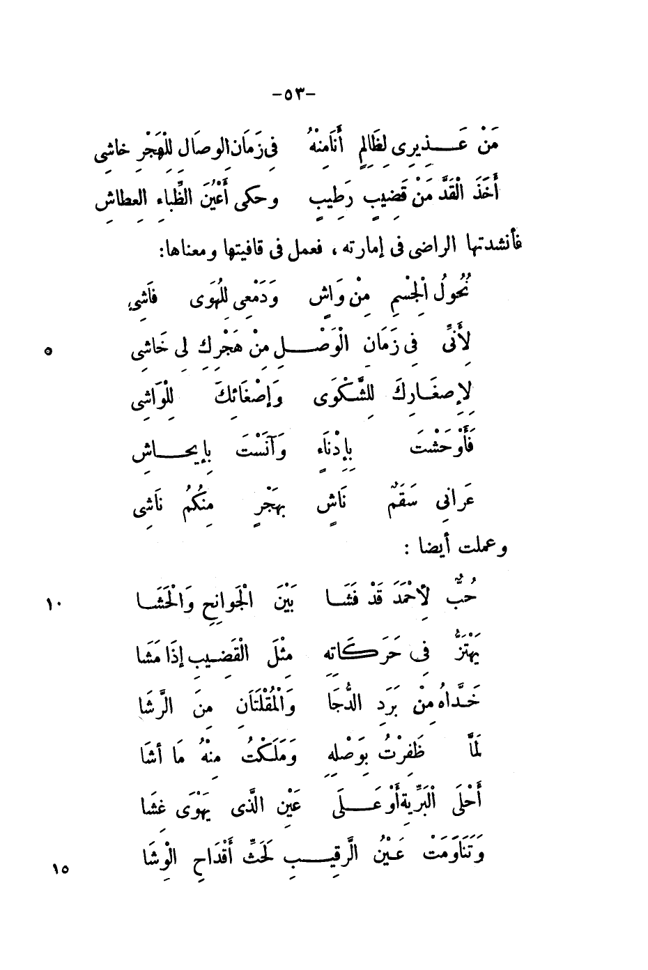 مَنْ عَذِيرِي لظَالِمٍ أَنَا مِنْهُ ... فِي زَمَانِ الوصَالِ لِلْهَجْرِ خَاشِي