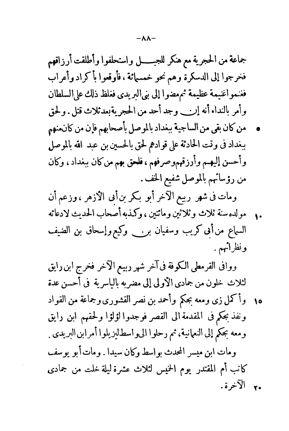 ومات ابن ميسر المحدث بواسط وكان سيداً. ومات أبو يوسف كاتب أم المقتدر يوم الخميس لثلاث عشرة ليلة خلت من جمادى الآخرة.