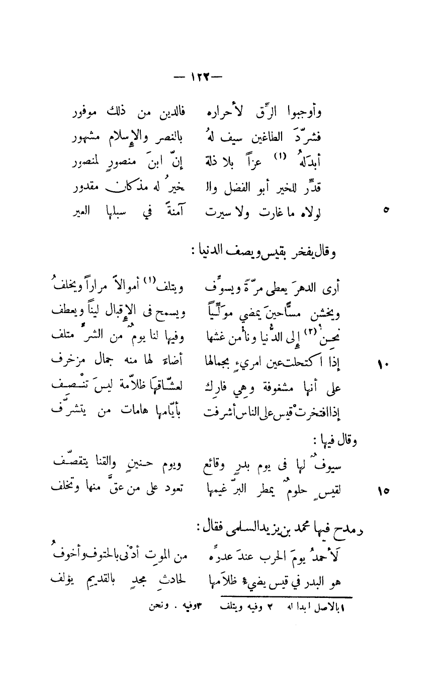 سيوف لها فى يوم بدر وقائع ... ويوم حنين والقنا يتقصّف