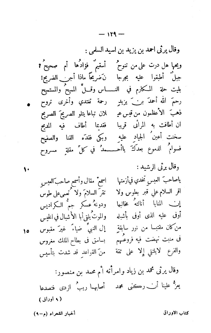 وقال يرثى احمد بن يزيد بن اسيد السلمى: