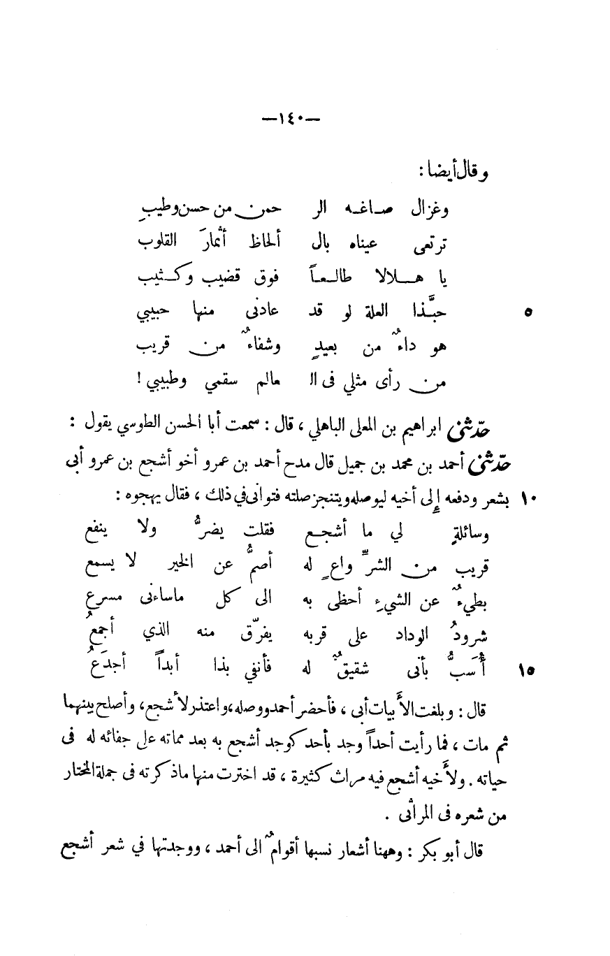 قال أبو بكر: وههنا أشعار نسبها أقوام الى أحمد، ووجدتها في شعر أشجع