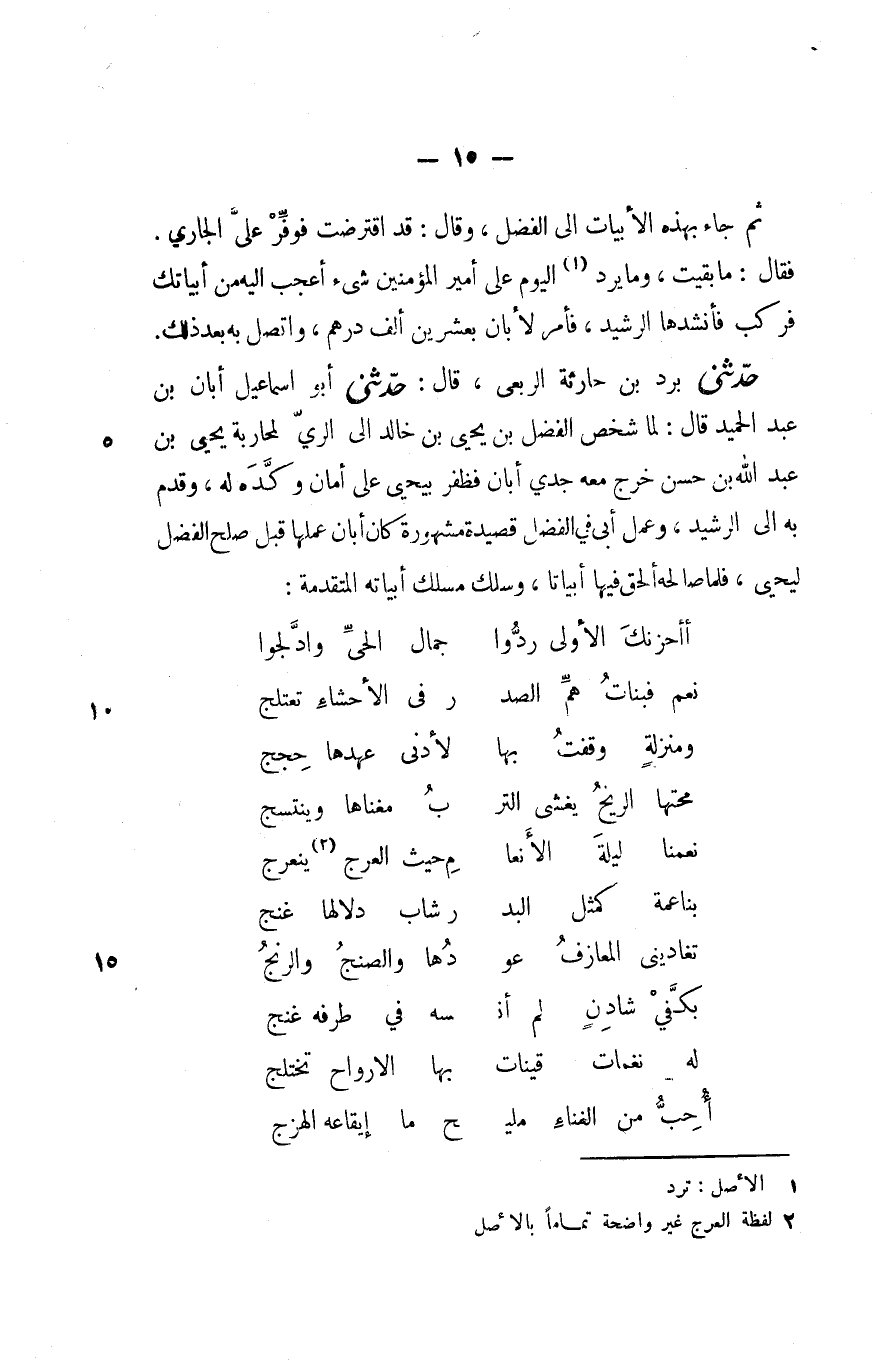 ثم جاء بهذه الأبيات الى الفضل، وقال: قد اقترضت فوفّر علىّ الجاري.