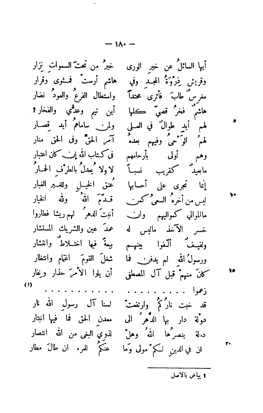 وقريش ذروة المجد وفي ... هاشم أرست فمثوى وقرار