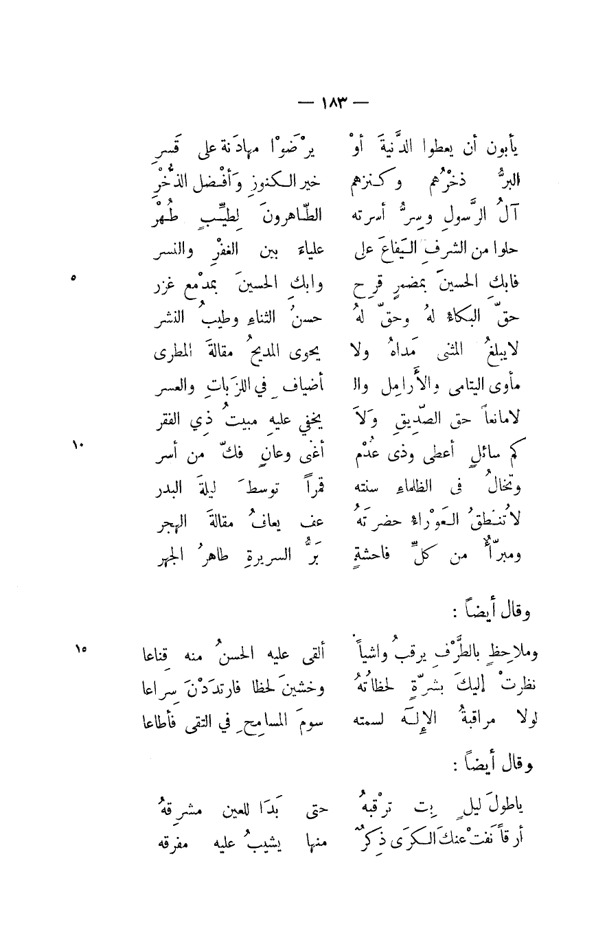 لا تنطق العوراء حضرته ... عف يعاف مقالة الهجر