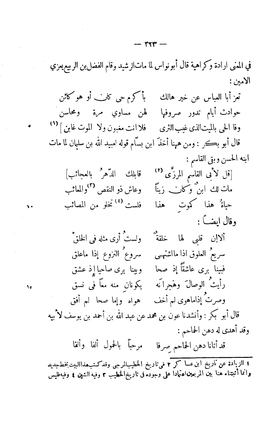 في المعنى ارادة وكراهية قال أبونواس لما مات الرشيد وقام الفضل بن الربيع يعزي الامين: