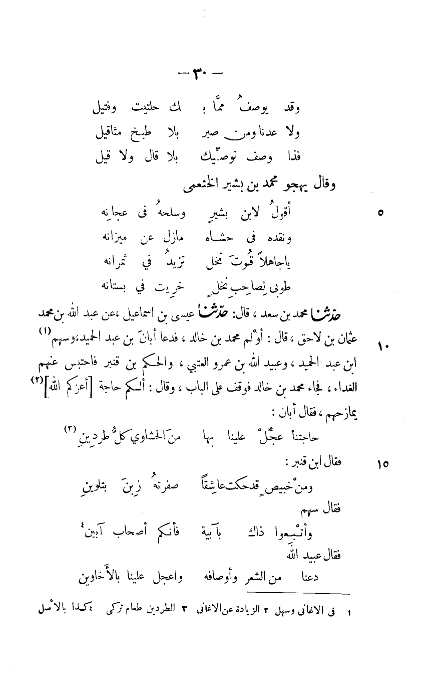 حدّثنا محمد بن سعد، قال: حدّثنا عيسى بن اسماعيل، عن عبد الله بن محمد عثمان بن لاحق، قال: أولم محمد بن خالد، فدعا أبان بن عبد الحميد، وسهم «1» ابن عبد الحميد، وعبيد الله بن عمرو العتبي، والحكم بن قنبر فاحتبس عنهم الغداء، فجاء محمد بن خالد فوقف على الباب، وقال: ألكم حاجة [أعزكم الله] «2» يمازحهم، فقال أبان: