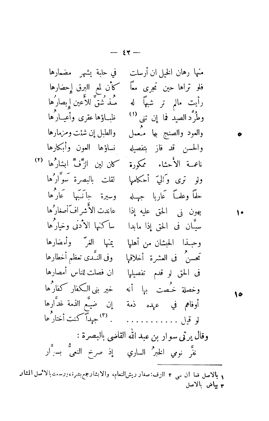 ولو ترى والي أحكامها ... لقلت بالبصرة سوّارها