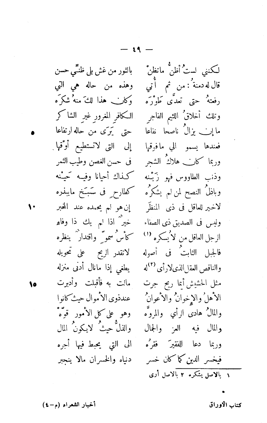والناقص العقل الذى لا رأى «2» له ... يطغي إذا ما نال أدنى منزله