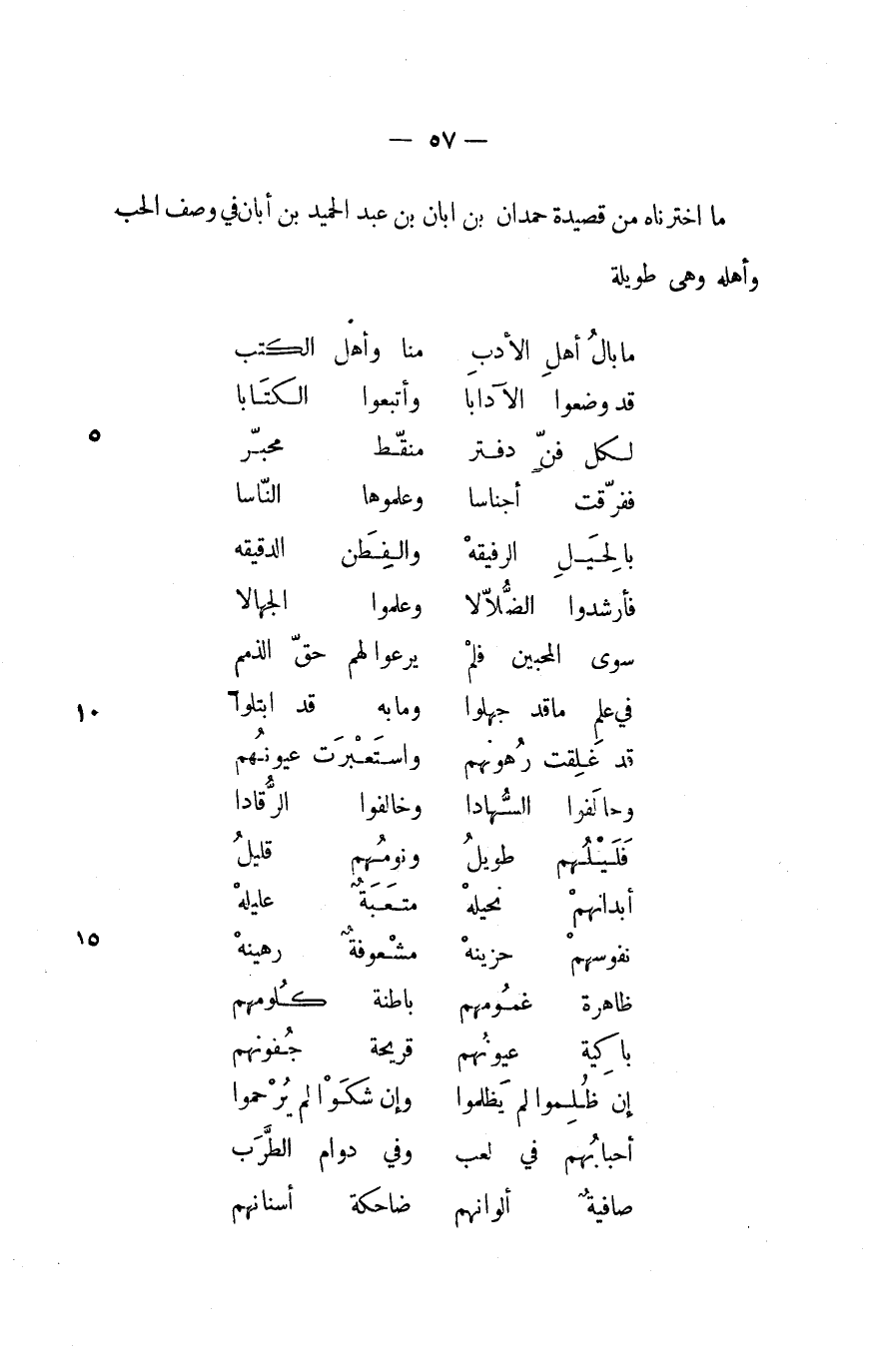 ما اخترناه من قصيدة حمدان بن ابان بن عبد الحميد بن أبان في وصف الحب وأهله وهى طويلة