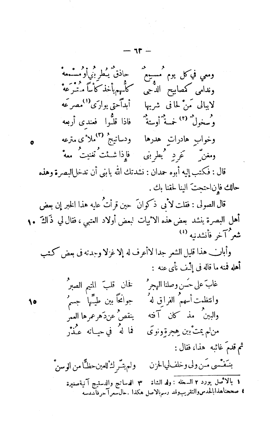 قال: فكتب إليه أبوه حمدان: نشدتك الله يا بنى أن تدخل البصرة وهذه حالك فإن احتجت الينا لحقنا بك.