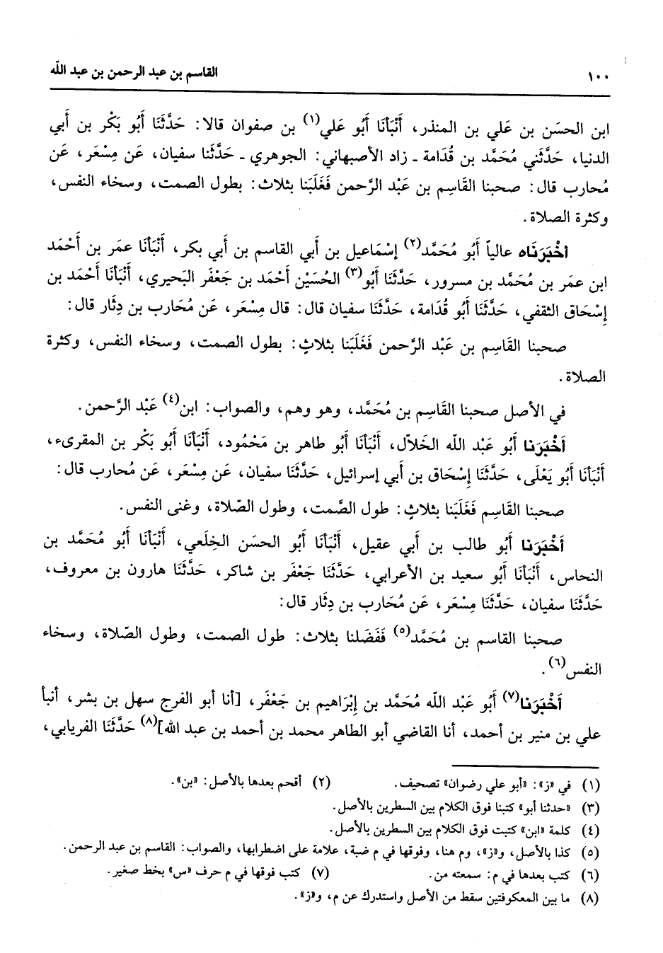(5) كذا بالاصل و " ز " وم هنا وفوقها في م ضبة علامة على اضطرابها والصواب: القاسم بن عبد الرحمن