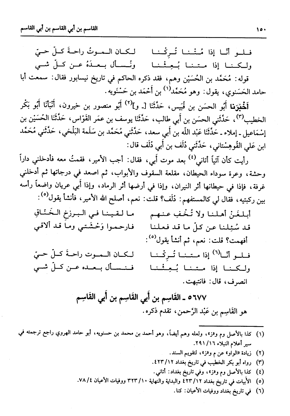 (5) الابيات في تاريخ بغداد 12 / 423 والبداية والنهاية 10 / 323 ووفيات الاعيان 4 / 78