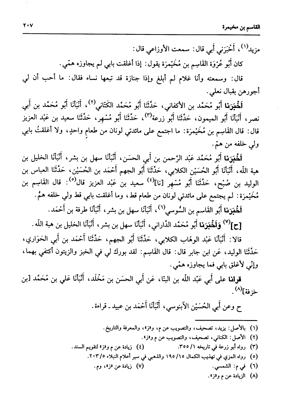 (5) رواه المزي في تهذيب الكمال 15 / 195 والذهبي في سير أعلام النبلاء 5 / 203