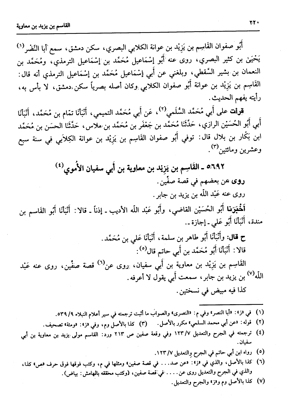 (4) ترجمته في الجرح والتعديل 7 / 123 وفي وقعة صفين ص 213 ورد: القاسم مولى يزيد بن معاوية بن أبي سفيان