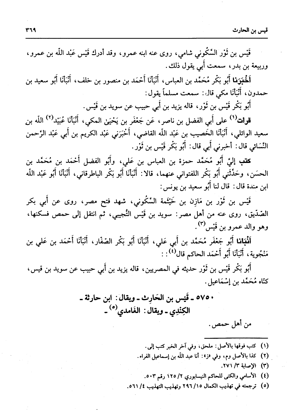 5750 - قيس بن الحارث ويقال ابن حارثة الكندي ويقال الغامدي (5) من أهل حمص