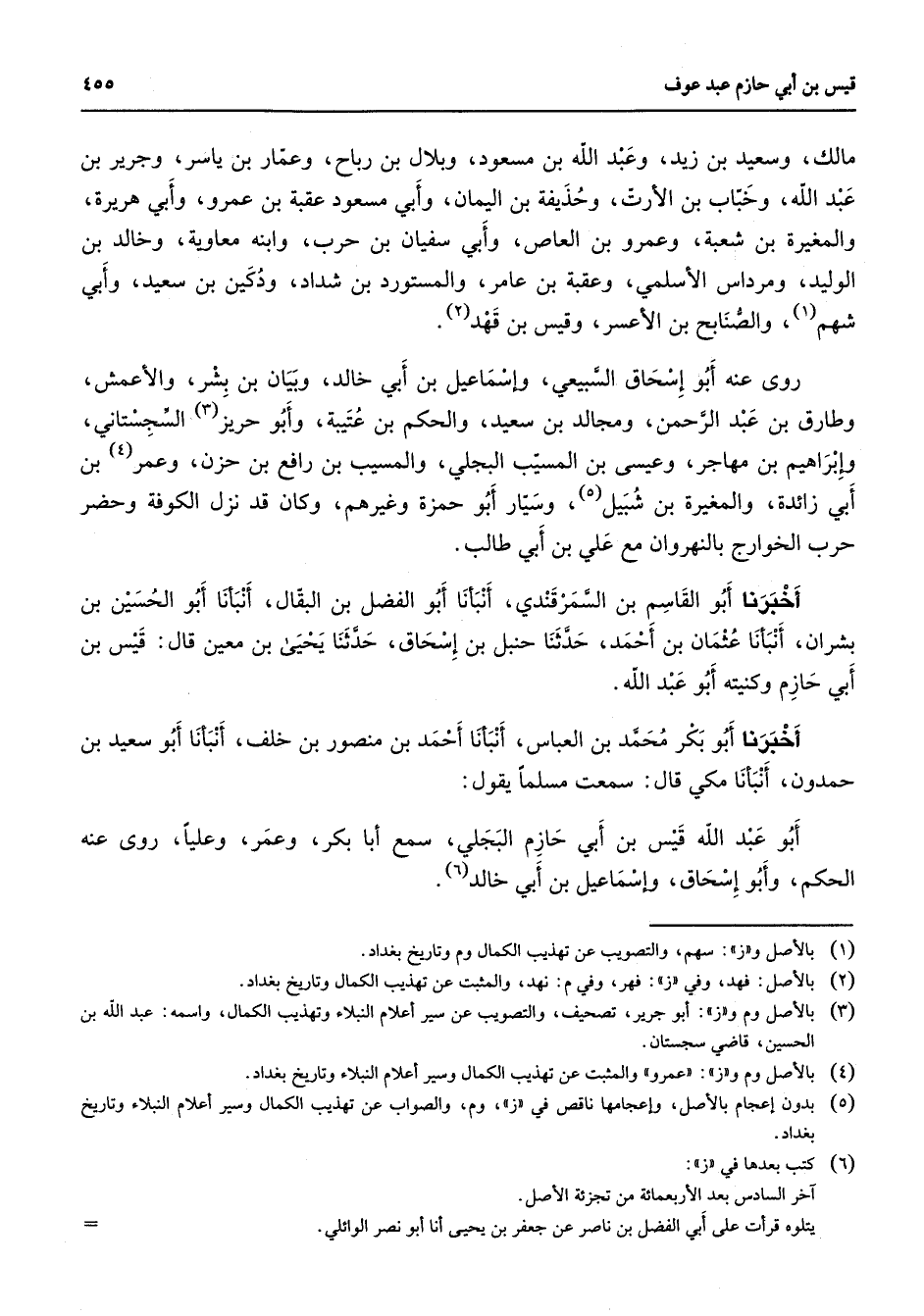 (4) بالاصل وم و " ز ": " عمرو " والمثبت عن تهذيب الكمال وسير أعلام النبلاء وتاريخ بغداد