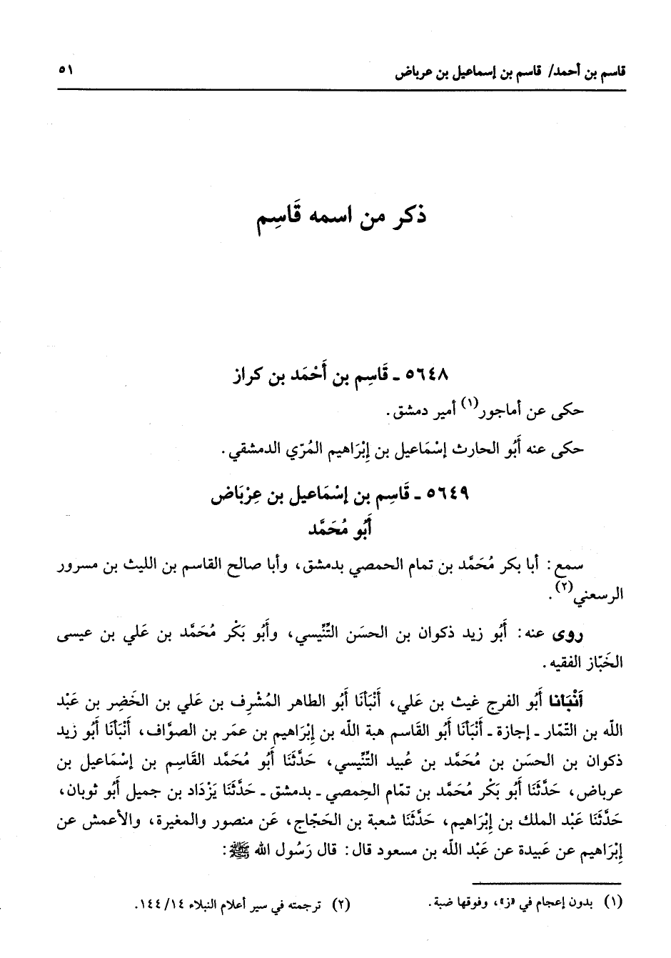 (2) ترجمته في سير أعلام النبلاء 14 / 144
