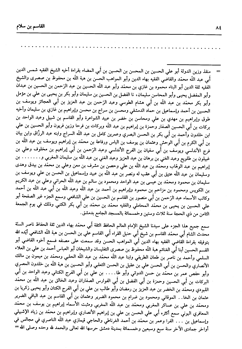 الفرا وعمر بن محمد بن أحمد الغرناطي والحاجي قيمازي عبد الله الناصري في مجالس في أواخر جمادى الاخر سنة سبع وسبعين وخمسمائة بمدينة دمشق حرسها الله تعالى والحمد لله وحده وصلى الله