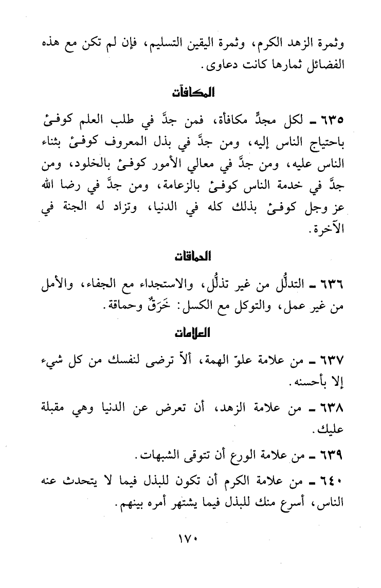 لكل مجدٍّ مكافأة، فمن جدَّ في طلب العلم كوفئ باحتياج الناس إليه، ومن جدَّ في بذل المعروف كوفئ بثناء الناس عليه، ومن جدَّ في معالى الأمور كوفئ بالخلود، ومن جدَّ في خدمة الناس كوفئ بالزعامة، ومن جدَّ في رضا الله عز وجل كوفئ بذلك كله في الدنيا، وتزاد له الجنة في الآخرة.