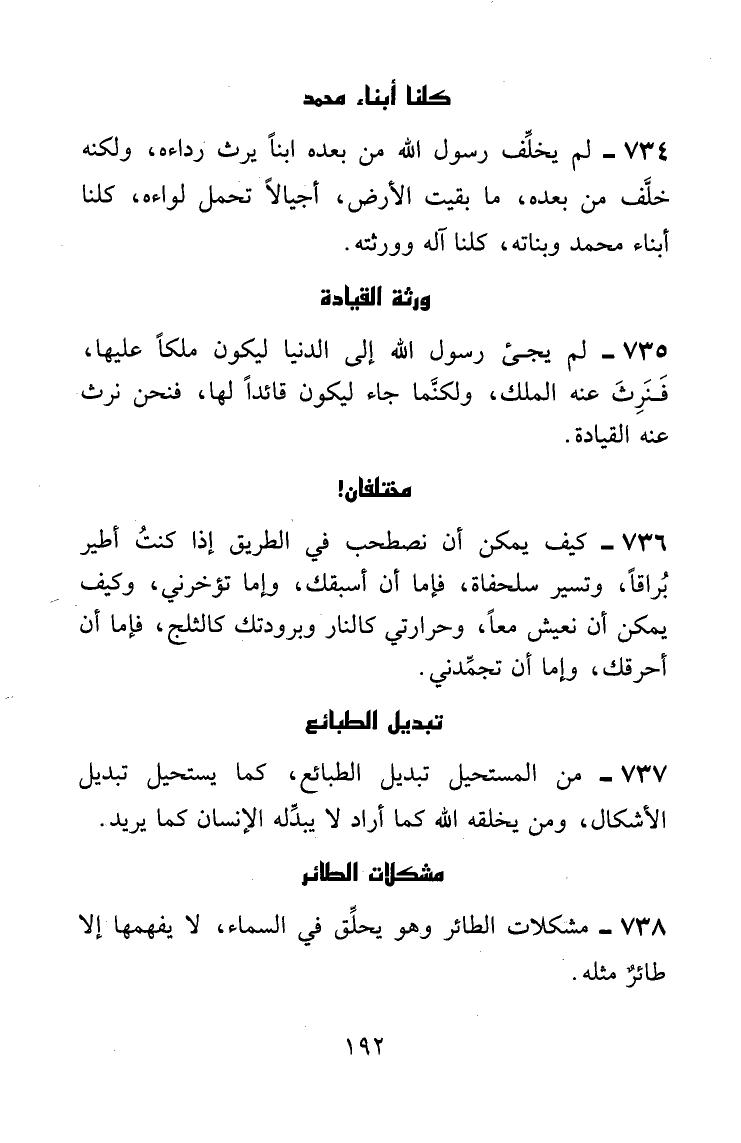 لم يجئ رسول الله صلى الله عليه وسلم إلى الدنيا ليكون ملكاً عليها، فنرث عنه الملك، ولكنَّما جاء ليكون قائداً لها، فنحن نرث عنه القيادة.