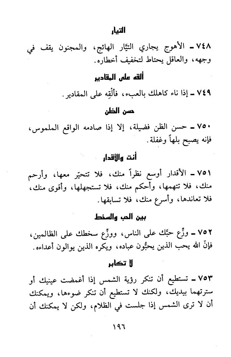 الأقدار أوسع نظراً منك، فلا تتحير معها. وأرحم منك، فلا تتهمها. وأحكم منك، فلا تستجهلها، وأقوى منك، فلا تعاندها. وأسرع منك، فلا تسابقها.