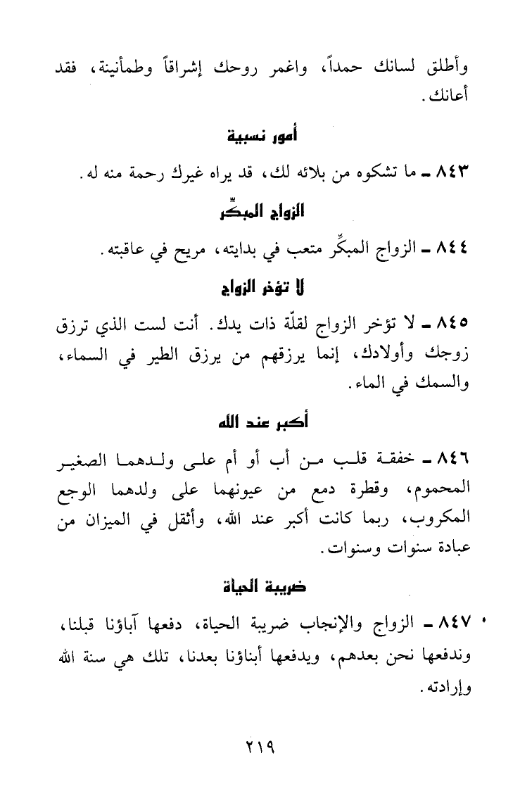 لا تؤخر الزواج لقلة ذات يدك، أنت لست الذي ترزق زوجك وأولادك، إنما يرزقهم من يرزق الطير في السماء والسمك في الماء.