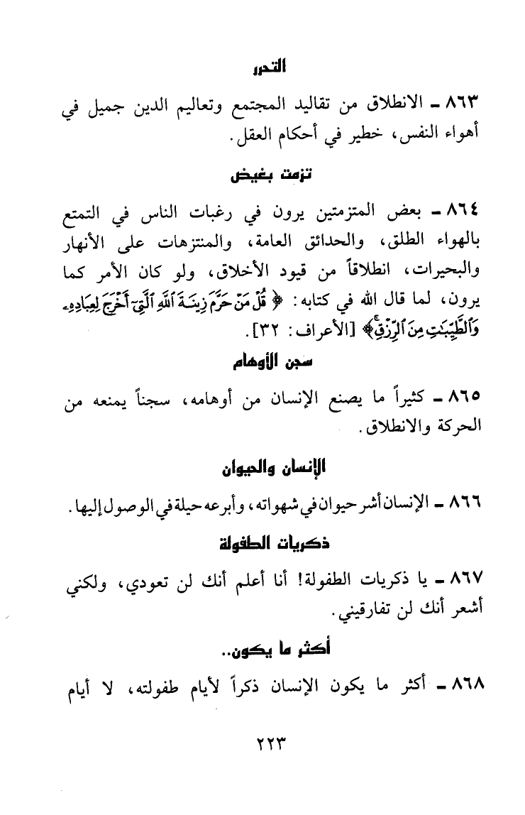 الانطلاق من تقاليد المجتمع وتعاليم الدين جميل في أهواء النفس، خطير في أحكام العقل.