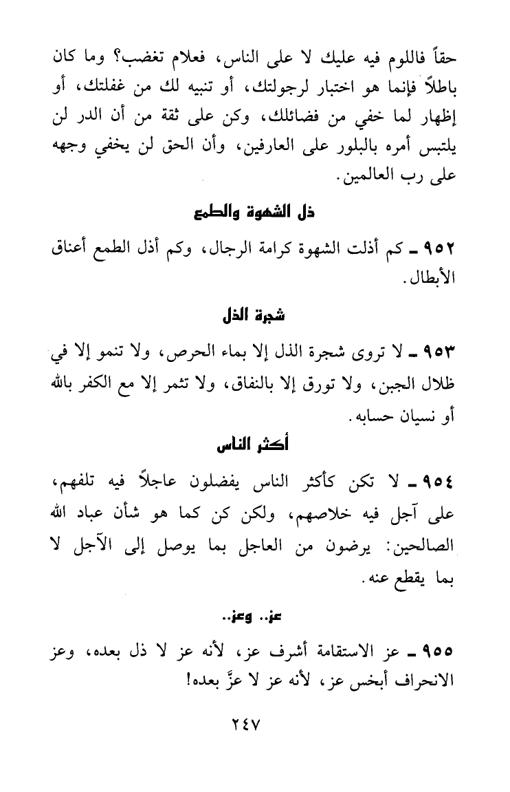 لا تروى شجرة الذل إلا بماء الحرص، ولا تنمو إلا في ظلال الجبن، ولا تورق إلا بالنفاق، ولا تثمر إلا مع الكفر بالله أو نسيان حسابه.