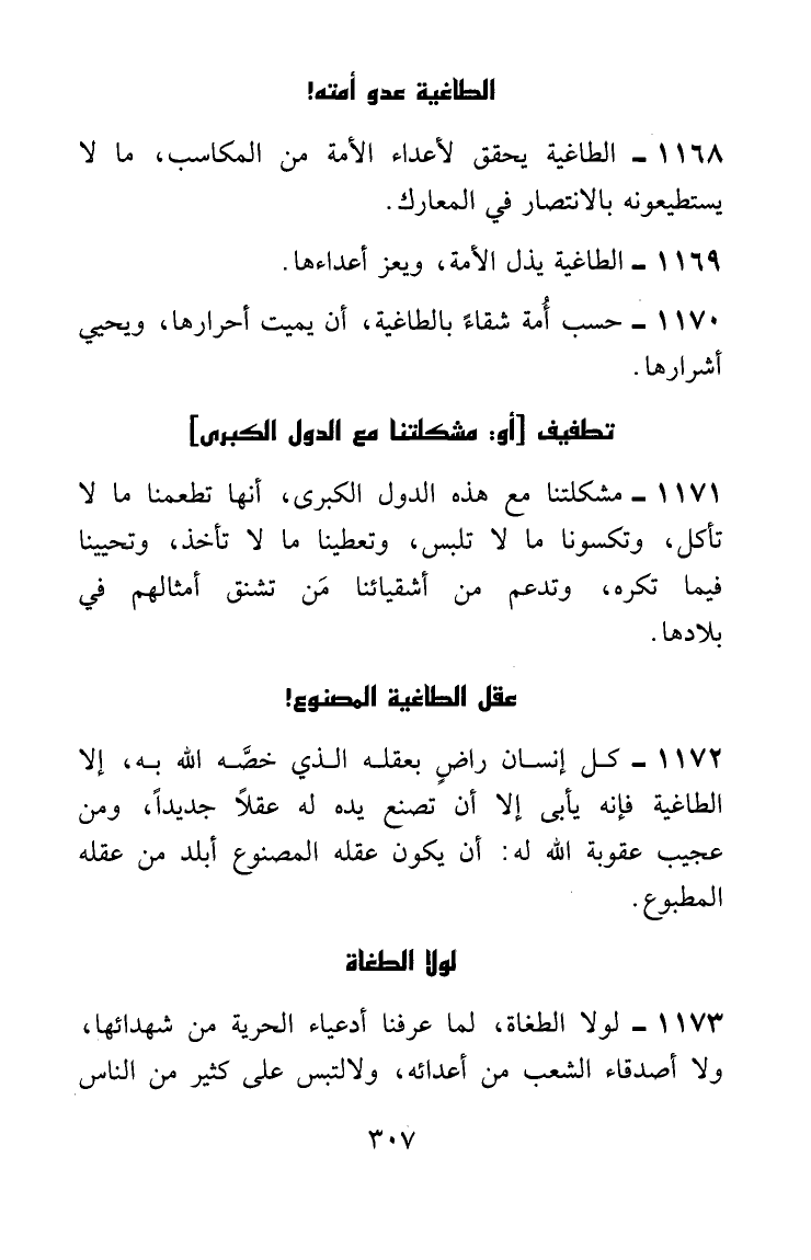 · الطاغية يذل الأمة، ويعز أعداءها.
