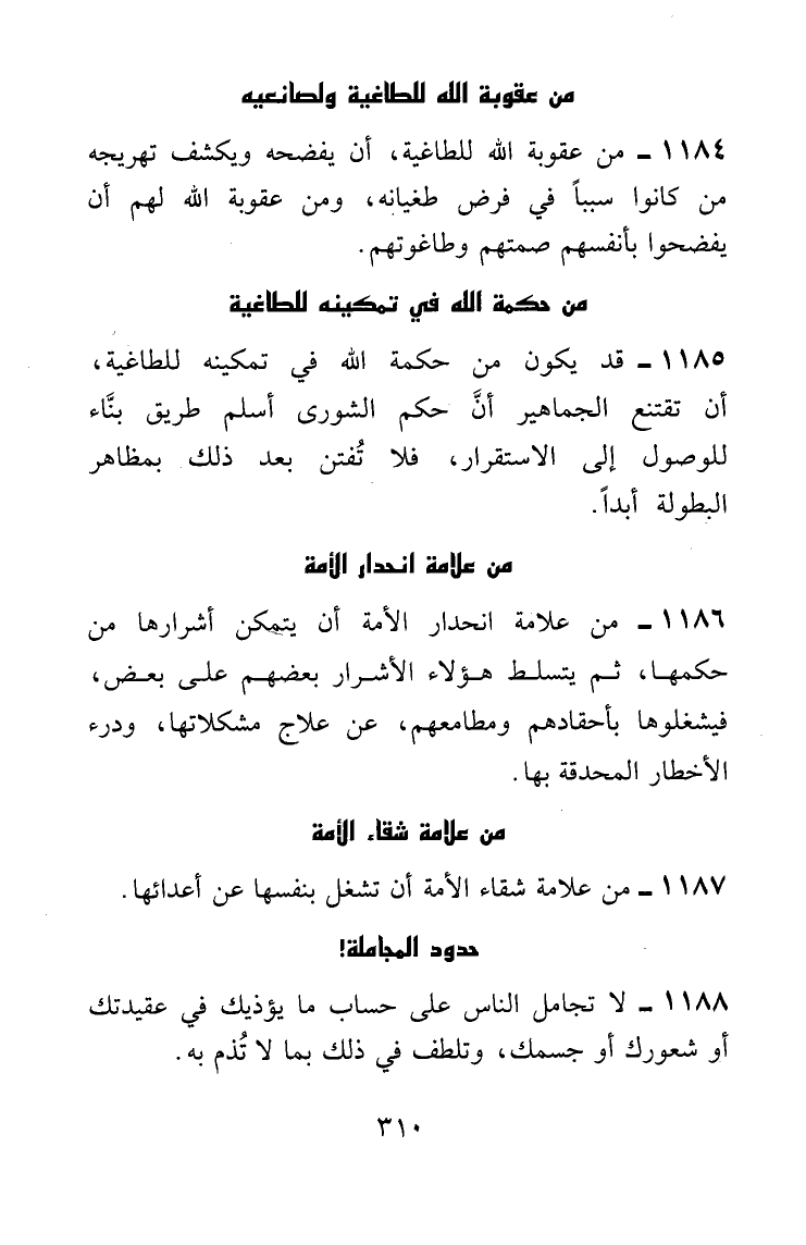 قد يكون من حكمة الله في تمكينه للطاغية، أن تقتنع الجماهير أنَّ حكم الشورى أسلم طريق بنَّاء للوصول إلى الاستقرار، فلا تُفتن بعد ذلك بمظاهر البطولة أبداً.