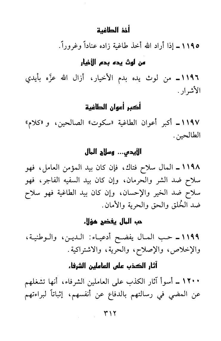 المال سلاح فتاك، فإن كان بيد المؤمنين العامل؛ فهو سلاح ضد الشر والحرمان، وإن كان بيد السفيه الفاجر؛ فهو سلاح ضد الخير والإحسان، وإن كان بيد الطاغية؛ فهو سلاح ضد الخُلق والحق والحرية والأمان.