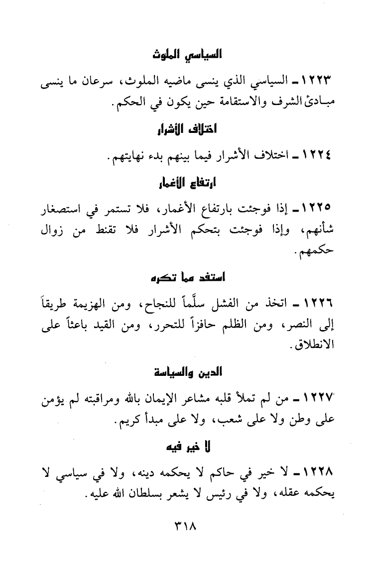 لا خير في حاكم لا يحكمه دينه، ولا في سياسي لا يحكمه عقله، ولا في رئيس لا يشعر بسلطان الله عليه.