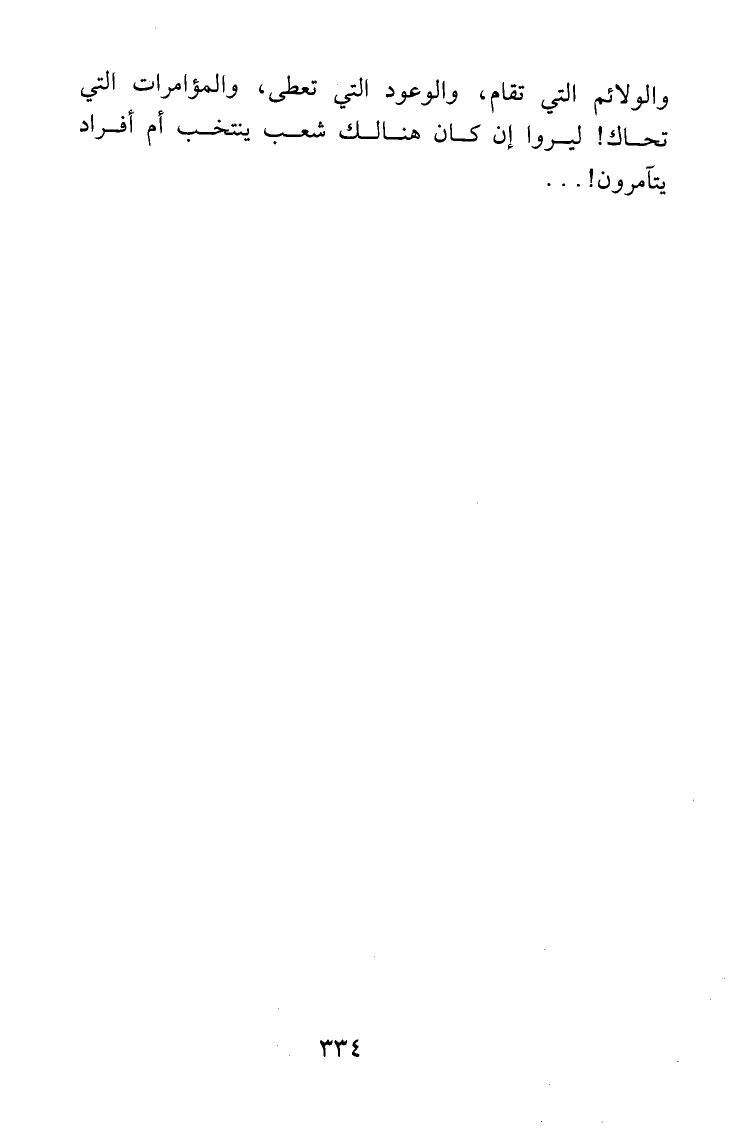 والولائم التي تقام، والوعود التي تعطى، والمؤامرات التي تحاك! ليروا إن كان هنالك شعب ينتخب أم أفراد يتآمرون!.