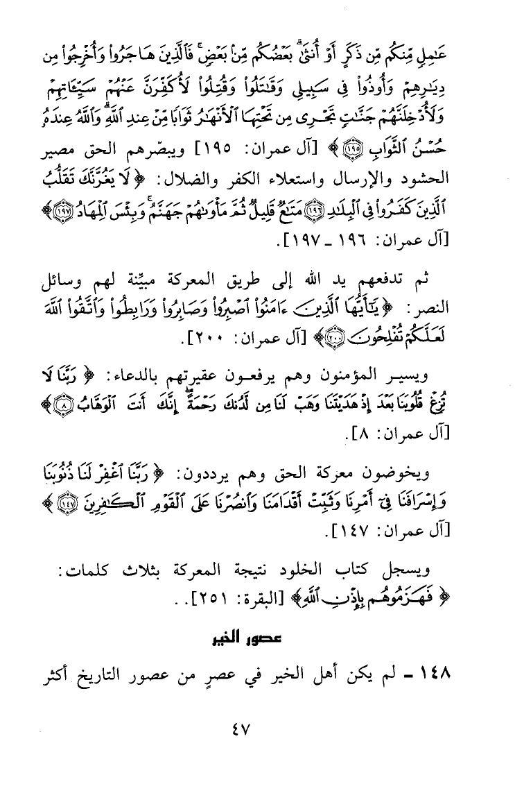 ثم تدفعهم يد الله إلى طريق المعركة مبينة لهم وسائل النصر: {يأيها الذين ءامنوا اصبروا وصابروا ورابطوا واتقوا الله لعلكم تفلحون}.