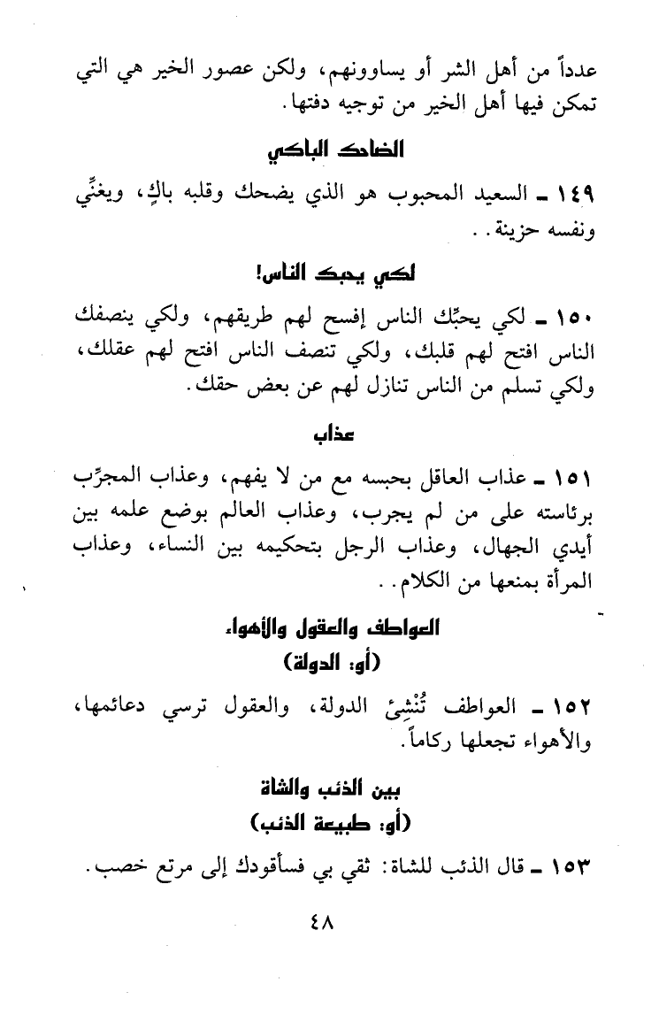 لكي يحبَّك الناس أفسح لهم طريقهم، ولكي ينصفك الناس افتح لهم قلبك، ولكي تنصف الناس افتح لهم عقلك، ولكي تسلم من الناس تنازل لهم عن بعض حقك.