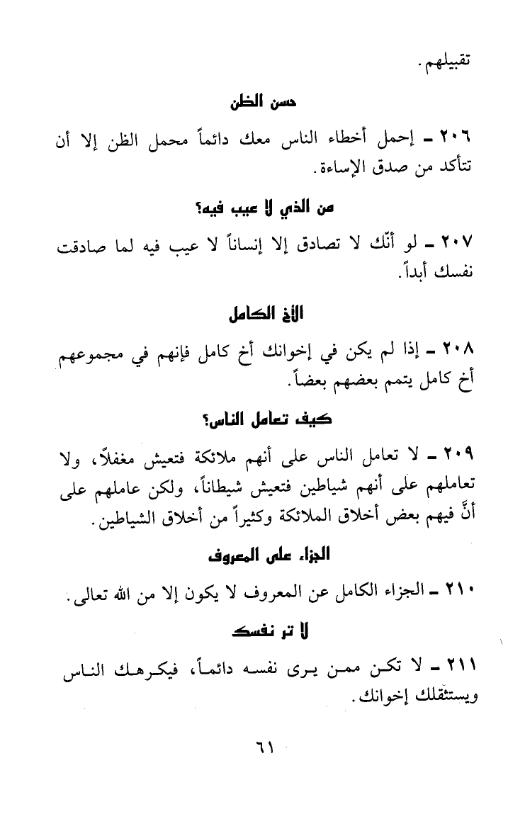 لا تعامل الناس على أنهم ملائكة فتعيش مغفلاً, ولا تعاملهم على أنهم شياطين فتعيش شيطاناً، ولكن عاملهم على أن فيهم بعض أخلاق الملائكة وكثيراً من أخلاق الشياطين.