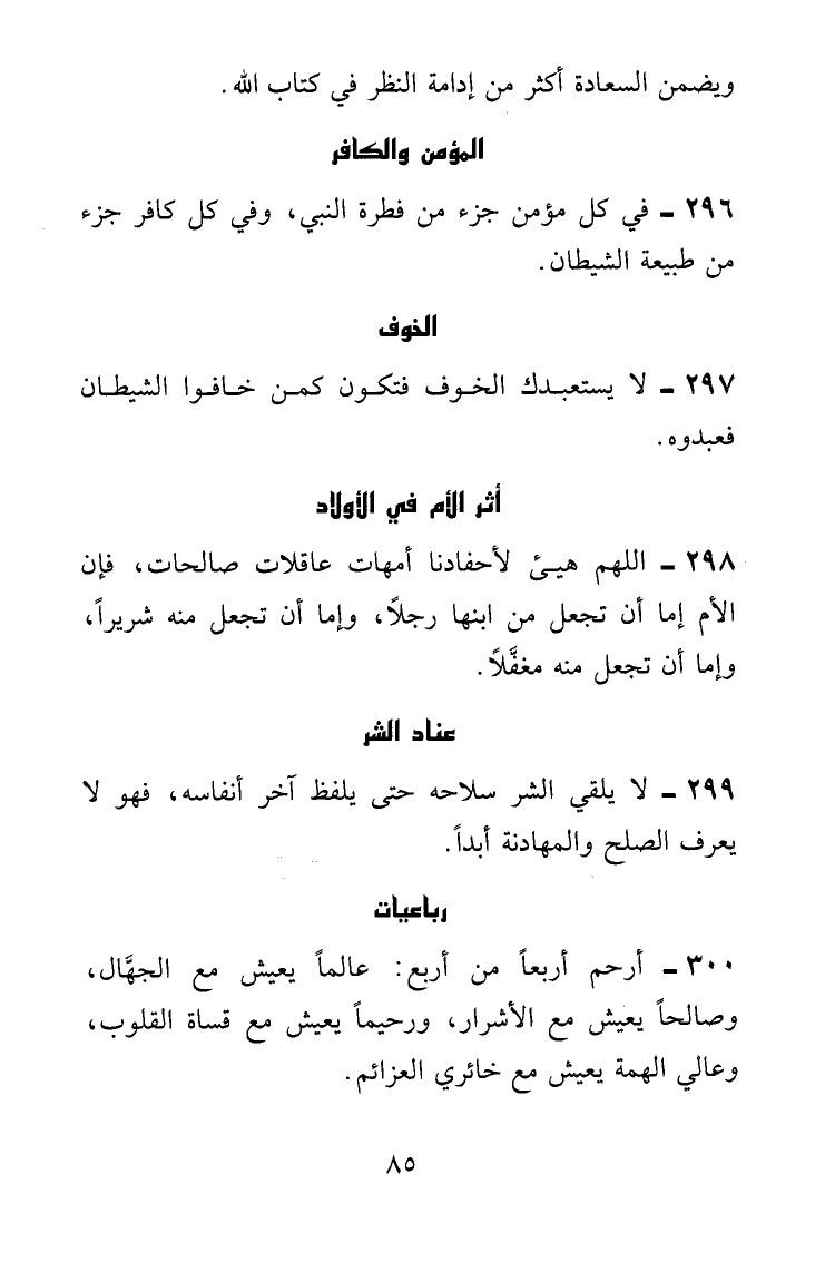 ارحم أربعاً من أربع: عالماً يعيش مع الجهال، وصالحاً يعيش مع الأشرار، ورحيماً يعيش مع قساة القلوب، وعالي الهمة يعيش مع خائري العزائم.