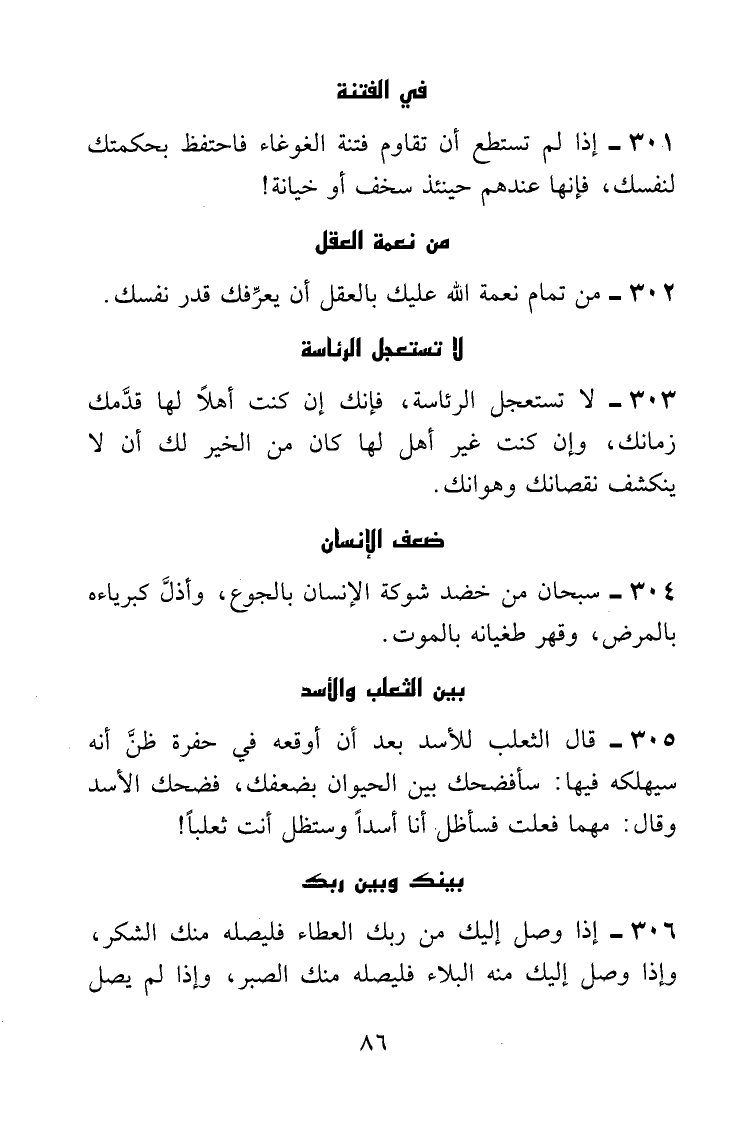 لا تستعجل الرئاسة؛ فإنك إن كنت أهلاً لها قدَّمك زمانك، وإن كنت غير أهل لها كان من الخير لك أن لا ينكشف نقصانك.