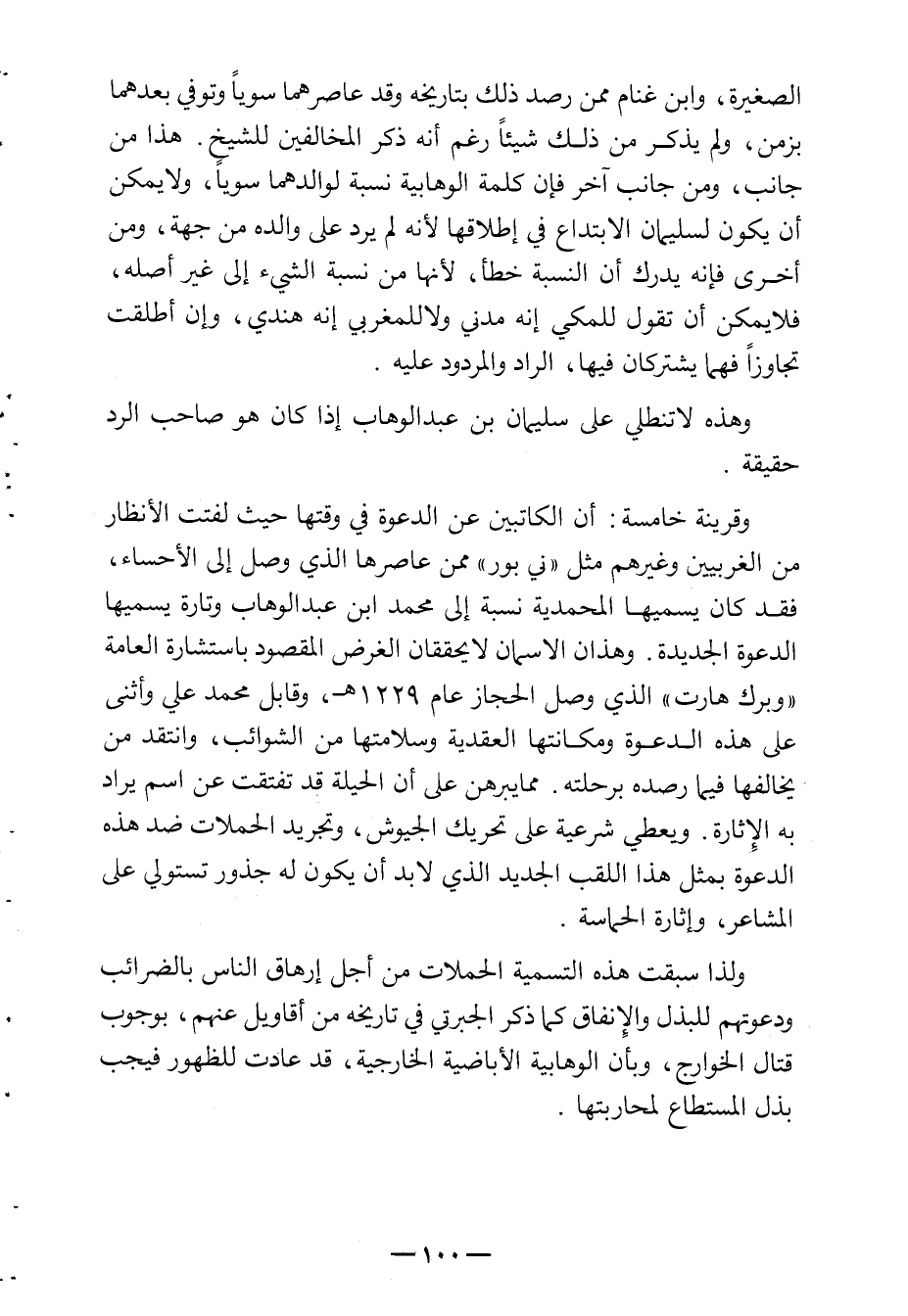 الصغيرة , وابن غنام ممن رصد ذلك بتاريخه وقد عاصرهما وتوفي بعدهما بزمن ولم يذكر من ذلك شيئاً رغم أنه ذكر المخالفين للشيخ. هذا من جانب ومن جانب آخر فإن كلمة الوهابية نسبة لوالدهما سوياً ولا يمكن أن يكون لسليمان الابتداع في إطلاقها لأنه لم يرد على والده من جهة ومن جهة أخرى فإنه يدرك أن النسبة خطأ لأنها من نسبة الشيء إلى غير أصله فال يمكن أن تقول للمكي إنه مدني ولا للمغربي أنه هندي وإن أطلقت تجاوزاً فهما يشتركان فيها , الراد والمردود عليها. وهذه لا تنطلي على سليمان بن عبد الوهاب إذا كان هو صاحب الرد حقيقة.
