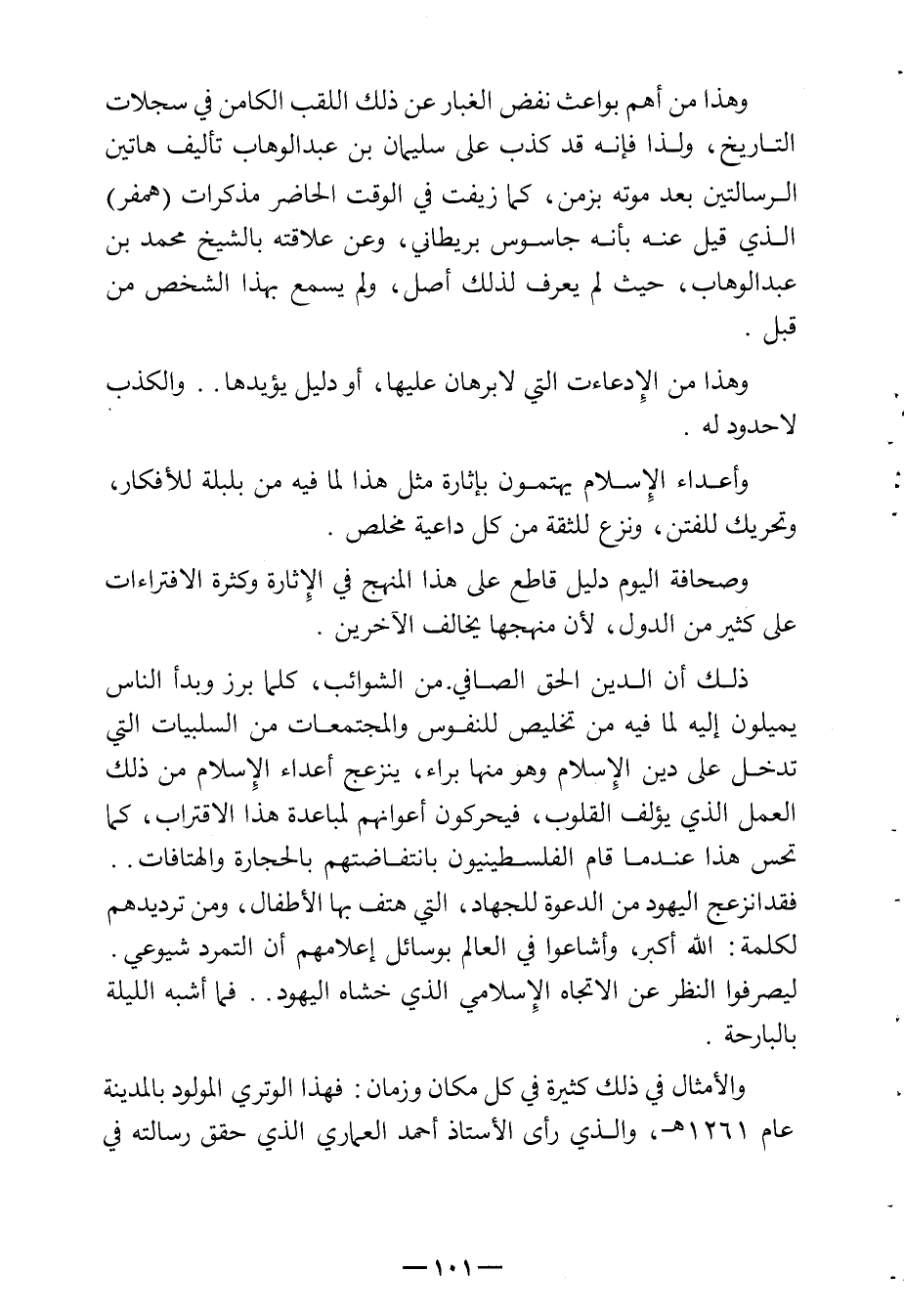 هذا من أهم بواعث نفض الغبار عن ذلك اللقب الكامن في سجلات التاريخ ولذا فإنه قد كذب على سليمان بن عبد الوهاب تأليف هذه الرسالتين بعد موته بزمن. كما زيفت في الوقت الحاضر مذكرات " همفر " الذي قيل عنه بأنه جاسوس بريطاني وعن علاقته بالشيخ محمد بن عبد الوهاب حيث لم يعرف لذلك أصل ولم يسمع بهذا الشخص من قبل.
