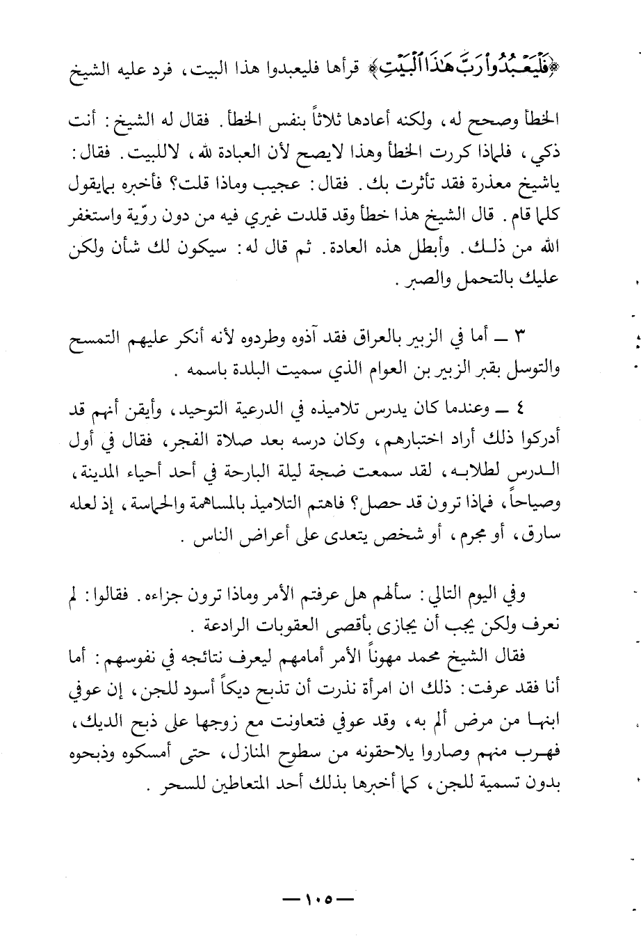 3- أما في الزبير بالعراق فقد آذوه وطردوه لأنه أنكر عليهم التمسح والتوسل بقبر الزبير بن العوام الذي سميت البلدة باسمه.