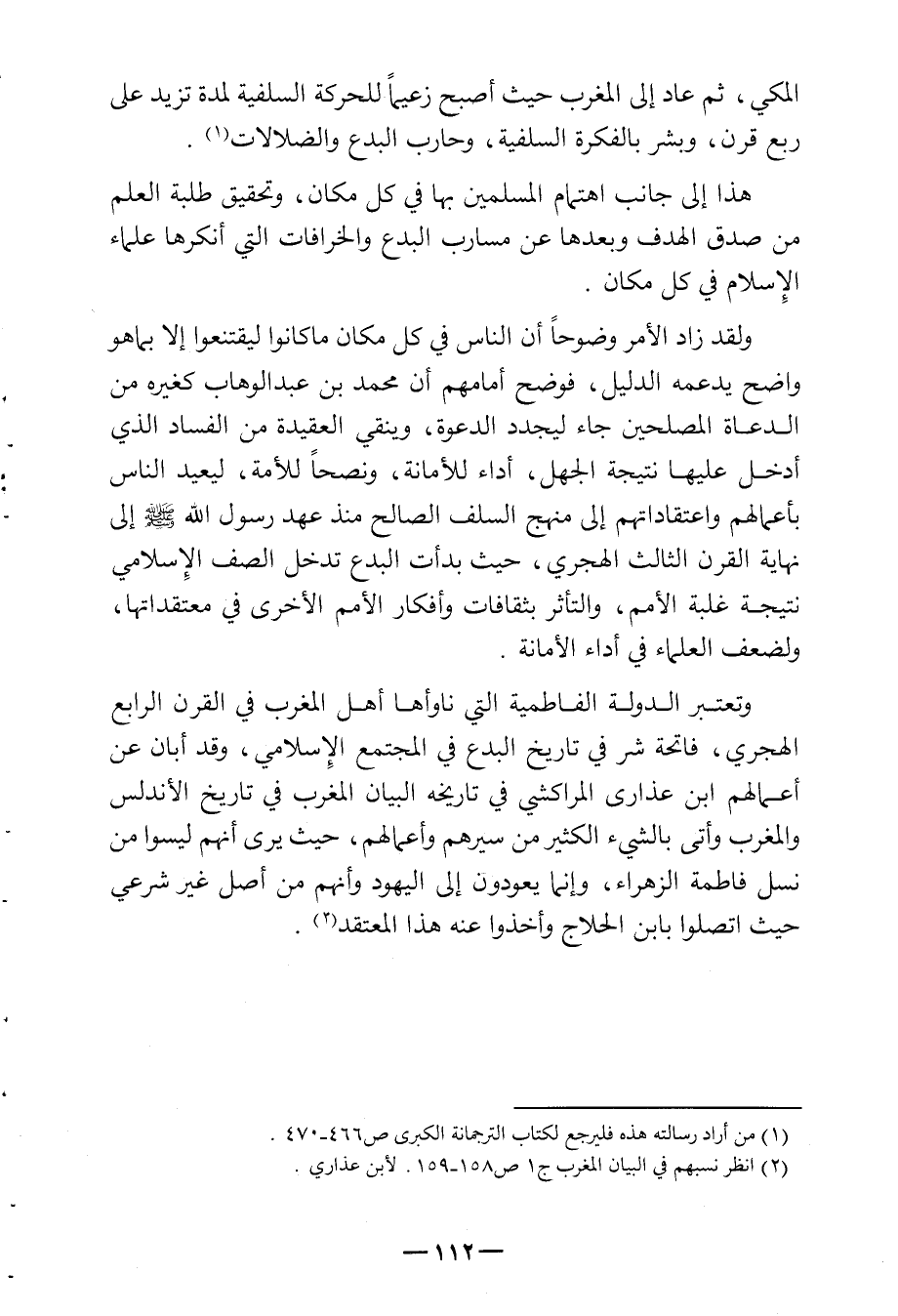 المكي ثم عاد على المغرب حيث أصبح زعيماً للحركة السلفية لمدة تزيد على ربع قرن وبشر بالفكرة السلفية وحارب البدع والضلالات (¬1) .