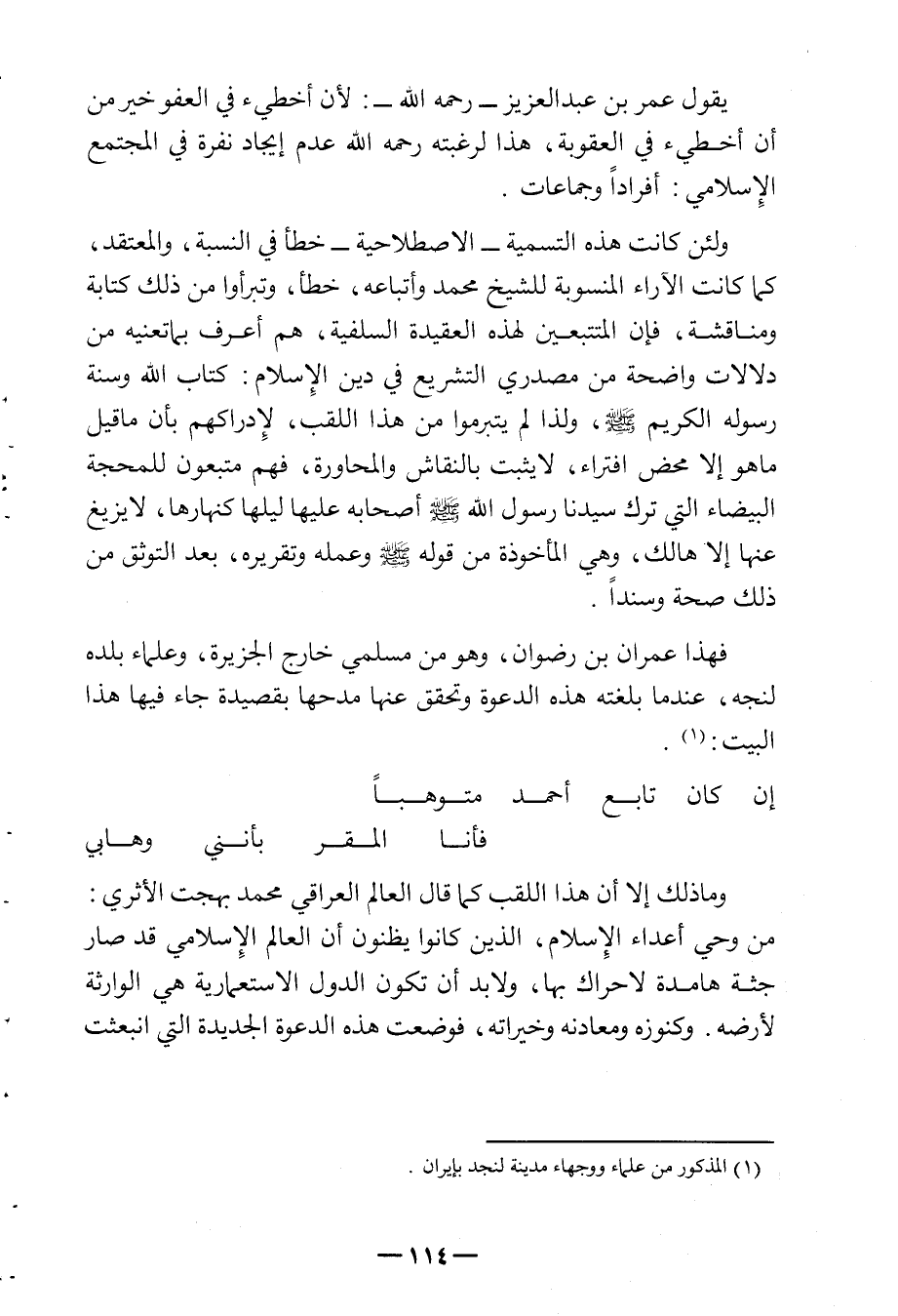 لأن أخطئ في العفو خير من أن أخطئ في العقوبة , هذا لرغبته رحمه الله عدم إيجاد نفرة في المجتمع الإسلامي أفراداً وجماعات