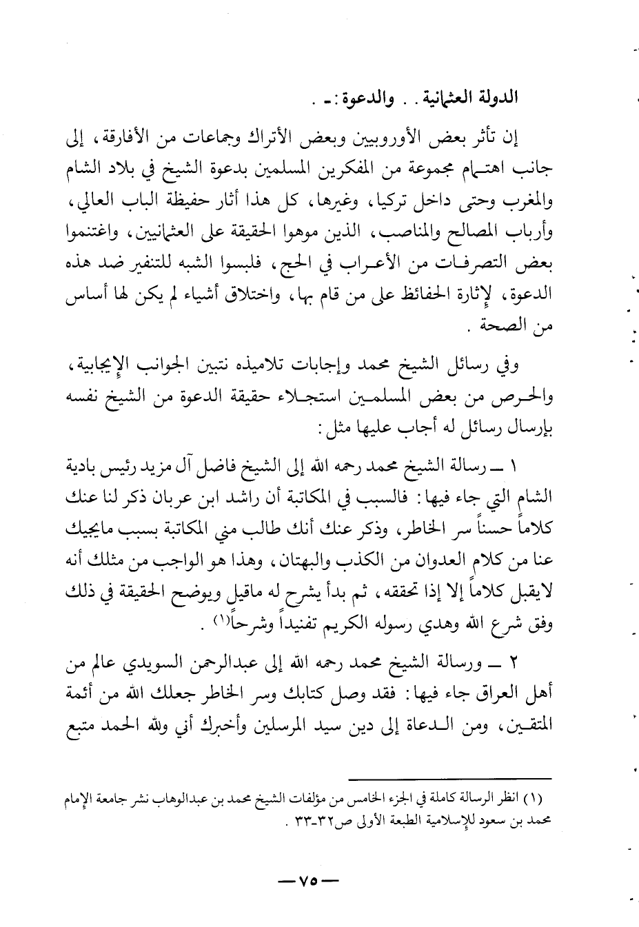 (¬1) - انظر الرسالة كاملة في الجزء الخامس من مؤلفات الشيخ محمد بن عبد الوهاب نشر جامعة الإمام محمد بن سعود الإسلامية الطبعة الأولى ص 32 - ص 33.