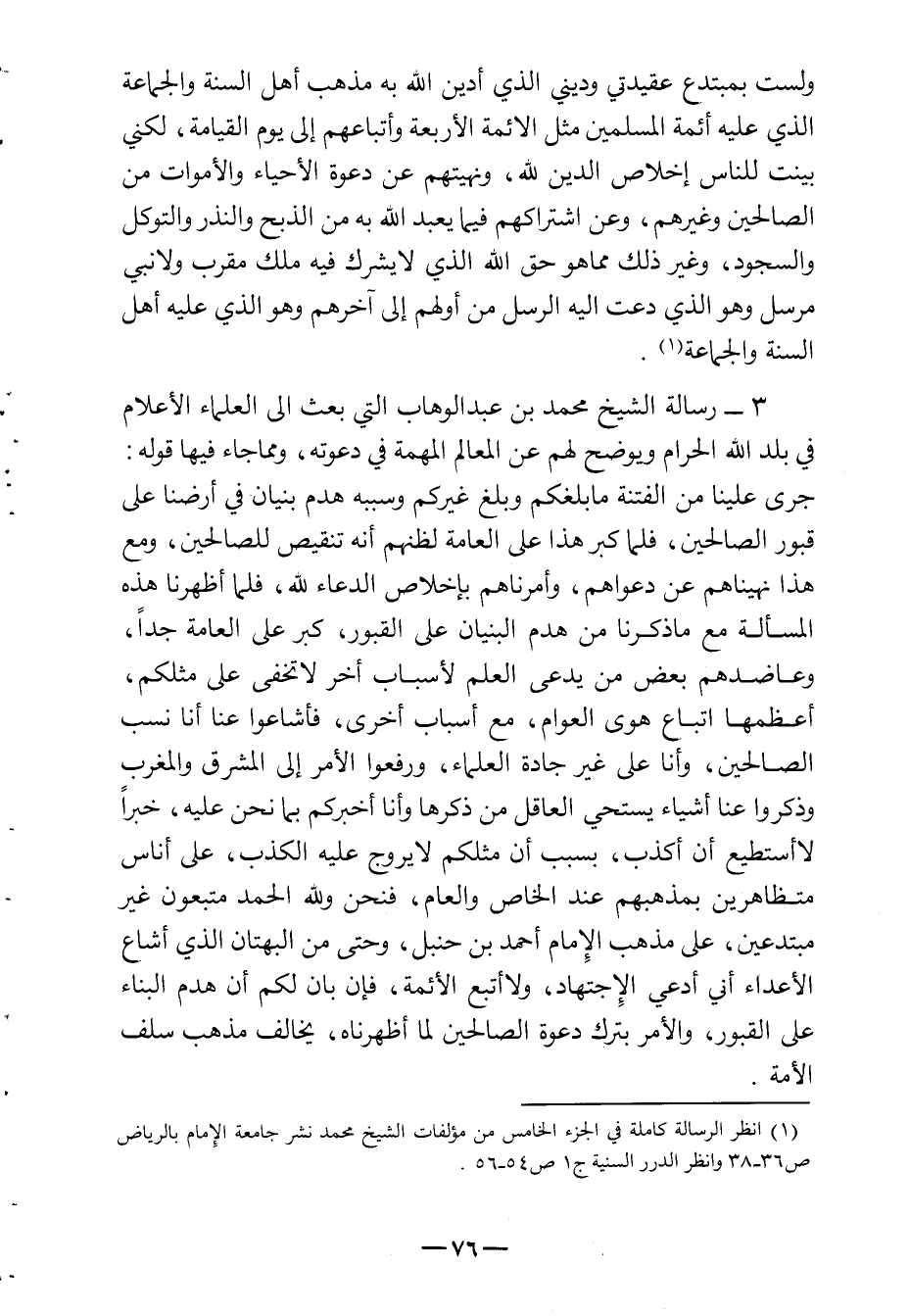 (¬1) - انظر الرسالة كاملة في الجزء الخامس من مؤلفات الشيخ محمد نشر جامعة الإمام بالرياض ص 36 - 38 وانظر الدرر السنية ج 1 ص 54 - 56.