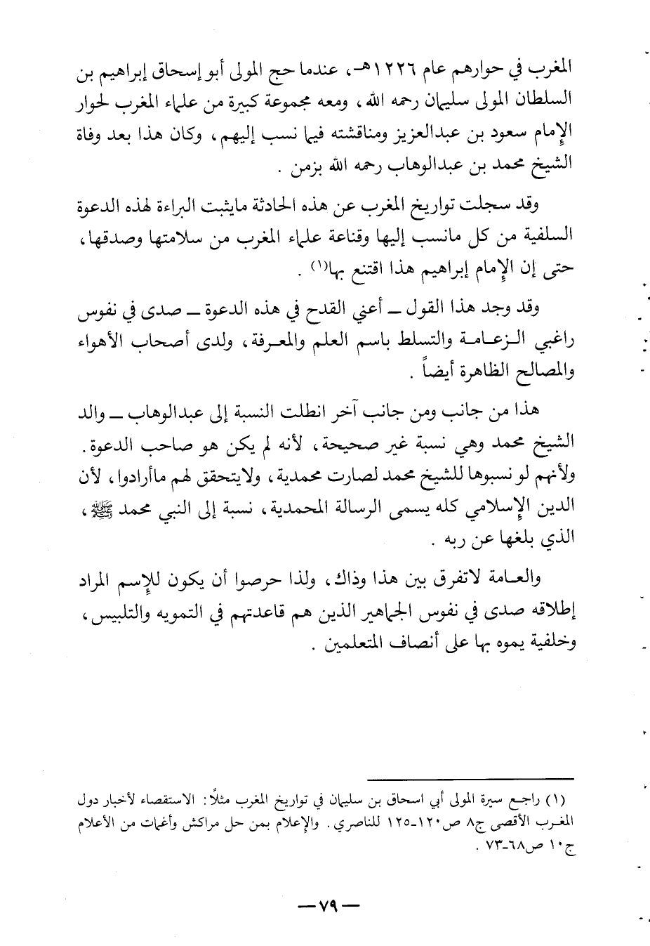 المغرب في حوارهم عام 1226 هـ عندما حج المولى أبو إسحاق إبراهيم بن السلطان المولى سليمان رحمه الله ومعه مجموعة كبيرة من علماء المغرب لحوار الإمام سعود بن عبد العزيز ومناقشته فيما نسب إليهم وكان هذا بعد وفاة الشيخ محمد بن عبد الوهاب رحمه الله بزمن.